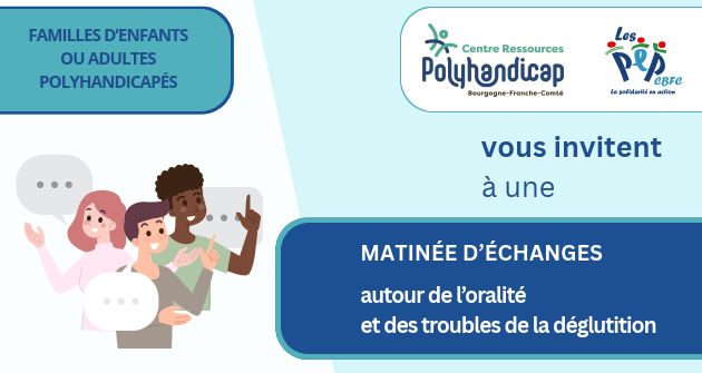 👨🏻👩🏼👧🏻👦🏻 Dans cette dynamique, le Centre Ressources Polyhandicap BFC propose aux familles d’enfants ou adultes polyhandicapés une matinée d’échanges gratuite, destinée à offrir un espace simple et accessible d’information, de discussion et de partage autour de l’oralité et des troubles de la déglutition chez les personnes polyhandicapées.